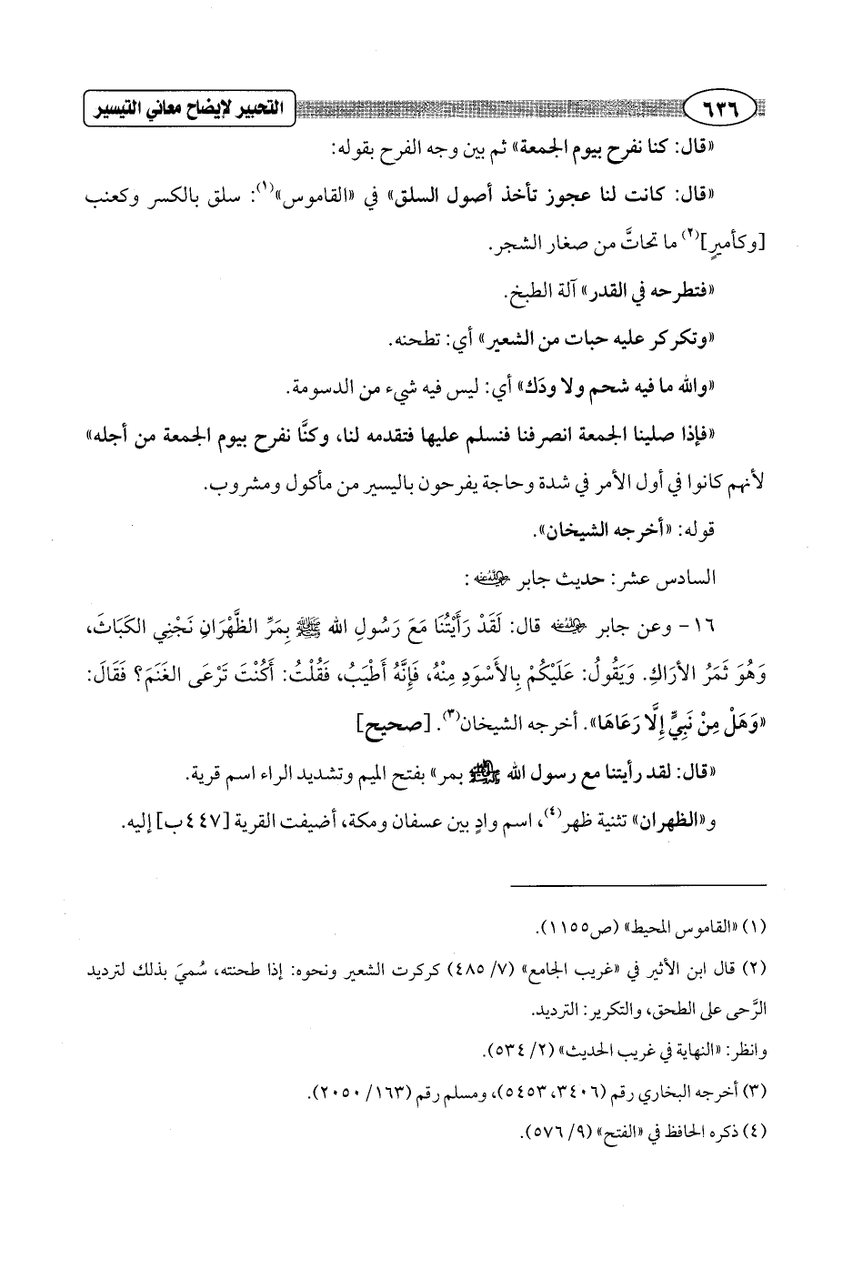 السادس عشر: حديث جابر - رضي الله عنه -:
