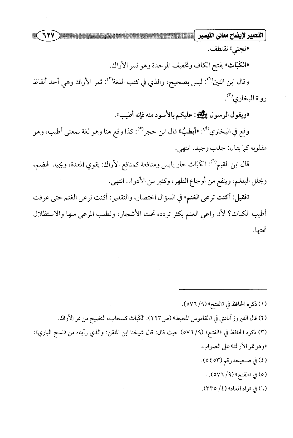 (¬3) ذكره الحافظ في "الفتح" (9/ 576) حيث قال: قال شيخنا ابن الملقن: والذي رأيناه من "نسخ الباري": "وهو تمر الأراك" على الصواب.