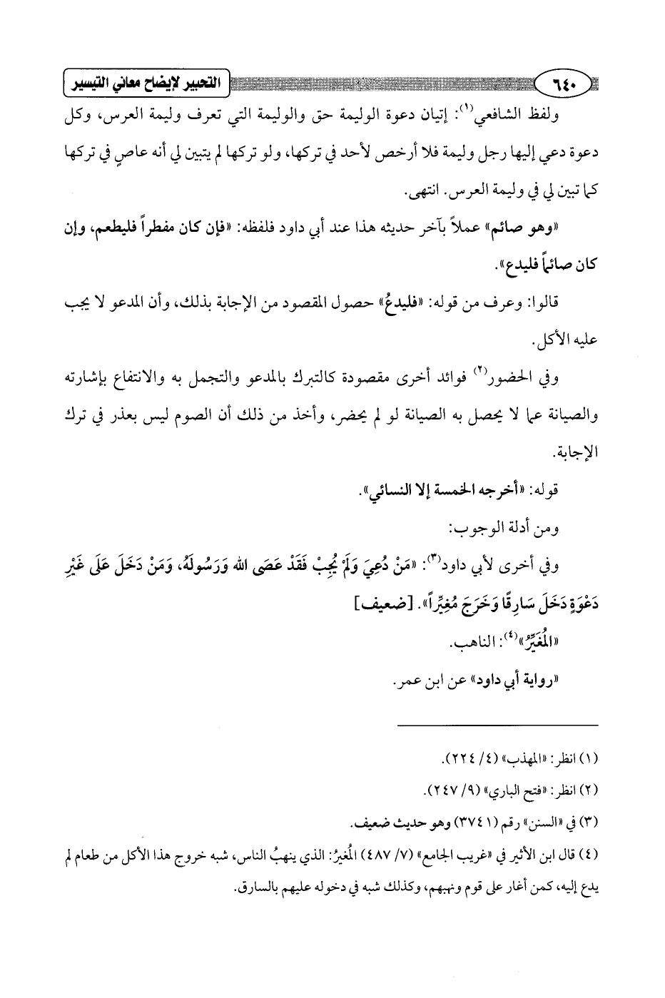 (¬4) قال ابن الأثير في "غريب الجامع" (7/ 487) المُغيرُ: الذي ينهبُ الناس، شبه خروج هذا الأكل من طعام لم يدع إليه، كمن أغار على قوم ونهبهم، وكذلك شبه في دخوله عليهم بالسارق.
