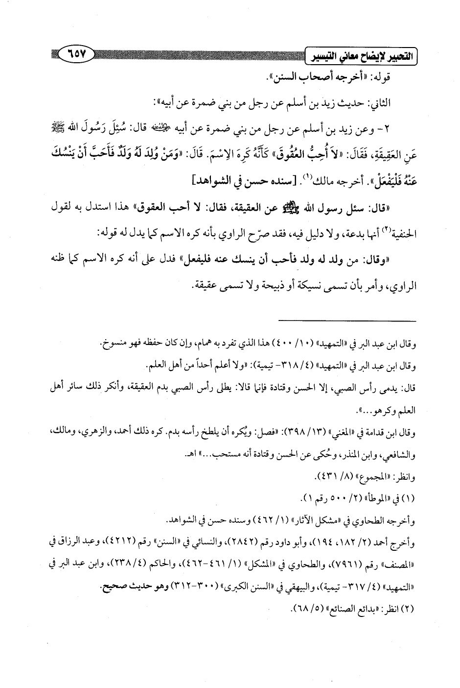 2 - وعن زيد بن أسلم عن رجل من بني ضمرة عن أبيه - رضي الله عنه - قال: سُئِلَ رَسُولَ الله - صلى الله عليه وسلم - عَنِ العَقِيقَةِ، فَقَالَ: "لاَ أُحِبُّ العُقُوقَ" كَأَنَّهُ كَرِهَ الِاسْمَ. قَالَ: "وَمَنْ وُلِدَ لَهُ وَلَدٌ فَأَحَبَّ أَنْ يَنْسُكَ عَنْهُ فَلْيَفْعَلْ". أخرجه مالك (¬1). [سنده حسن في الشواهد]