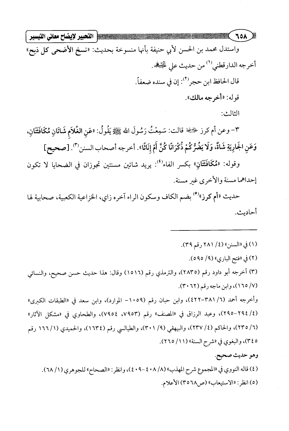 واستدل محمَّد بن الحسن لأبي حنيفة بأنها منسوخة بحديث: "نسخ الأضحى كل ذبح" أخرجه الدارقطني (¬1) من حديث علي - عليه السلام -.