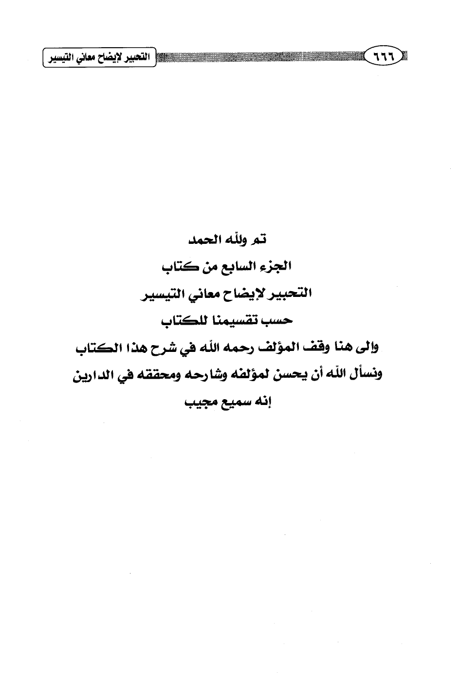 كتاب التحبير لإيضاح معاني التيسير (اسم الجزء: 7)