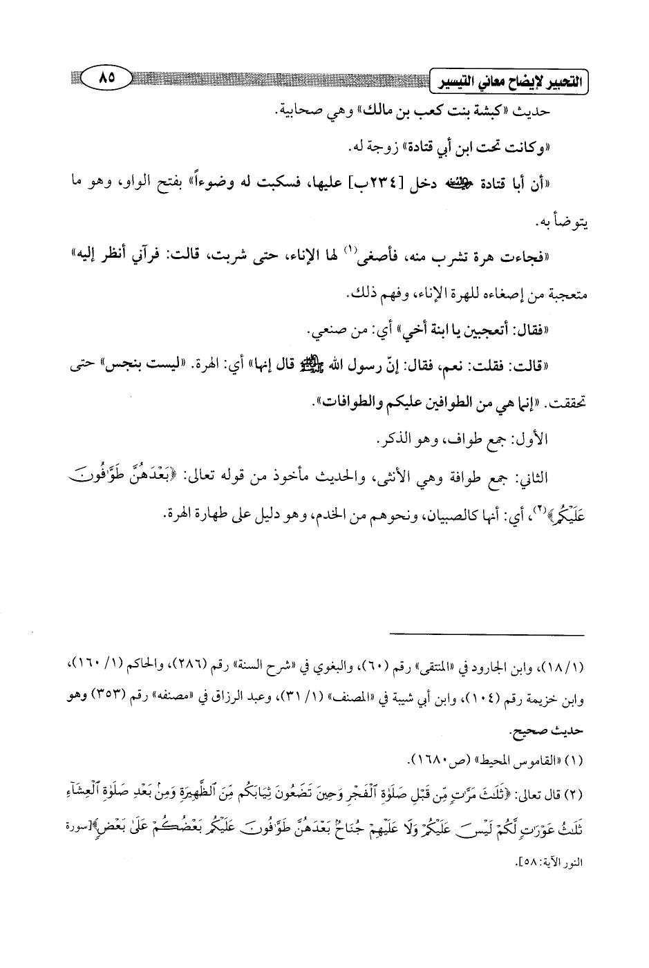 حديث "كبشة بنت كعب بن مالك" وهي صحابية.