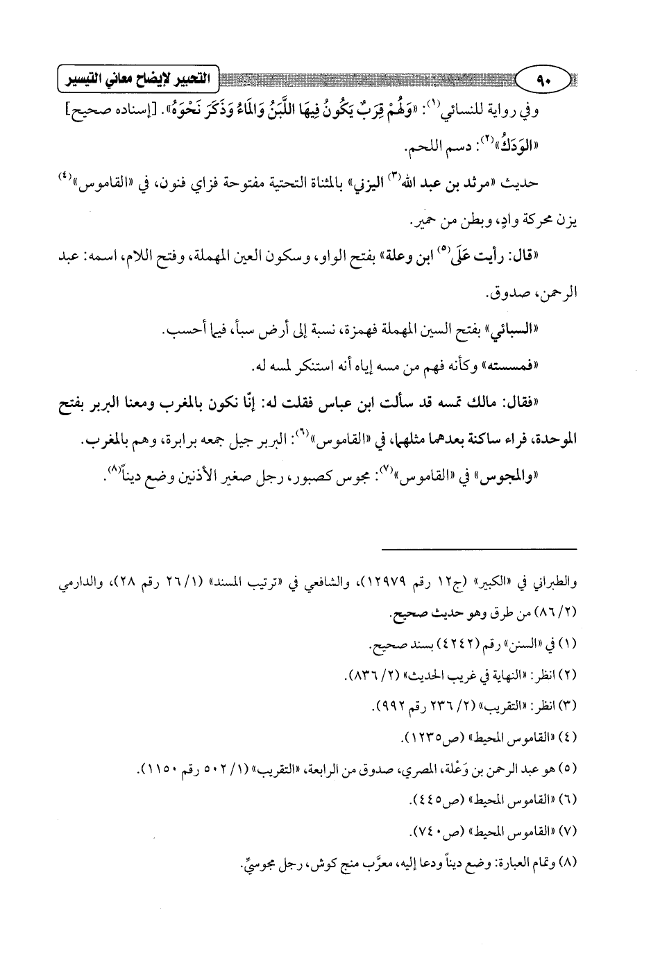 "فقال: مالك تمسه قد سألت ابن عباس فقلت له: إنّا نكون بالمغرب ومعنا البربر بفتح الموحدة، فراء ساكنة بعدهما مثلهما، في "القاموس" (¬6): البربر جيل جمعه برابرة, وهم بالمغرب.
