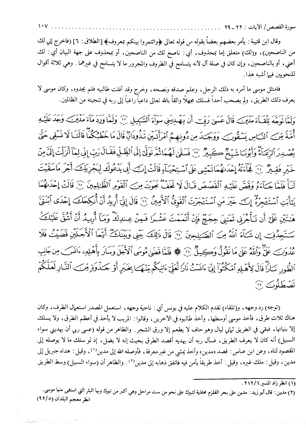 ( وَلَمَّا تَوَجَّهَ تِلْقَاء مَدْيَنَ قَالَ عَسَى رَبّى أَن يَهْدِيَنِى سَوَاء السَّبِيلِ وَلَمَّا وَرَدَ مَاء مَدْيَنَ وَجَدَ عَلَيْهِ أُمَّةً مّنَ النَّاسِ يَسْقُونَ وَوَجَدَ مِن دُونِهِمُ امْرَأَتَينِ تَذُودَانِ قَالَ مَا خَطْبُكُمَا قَالَتَا ).