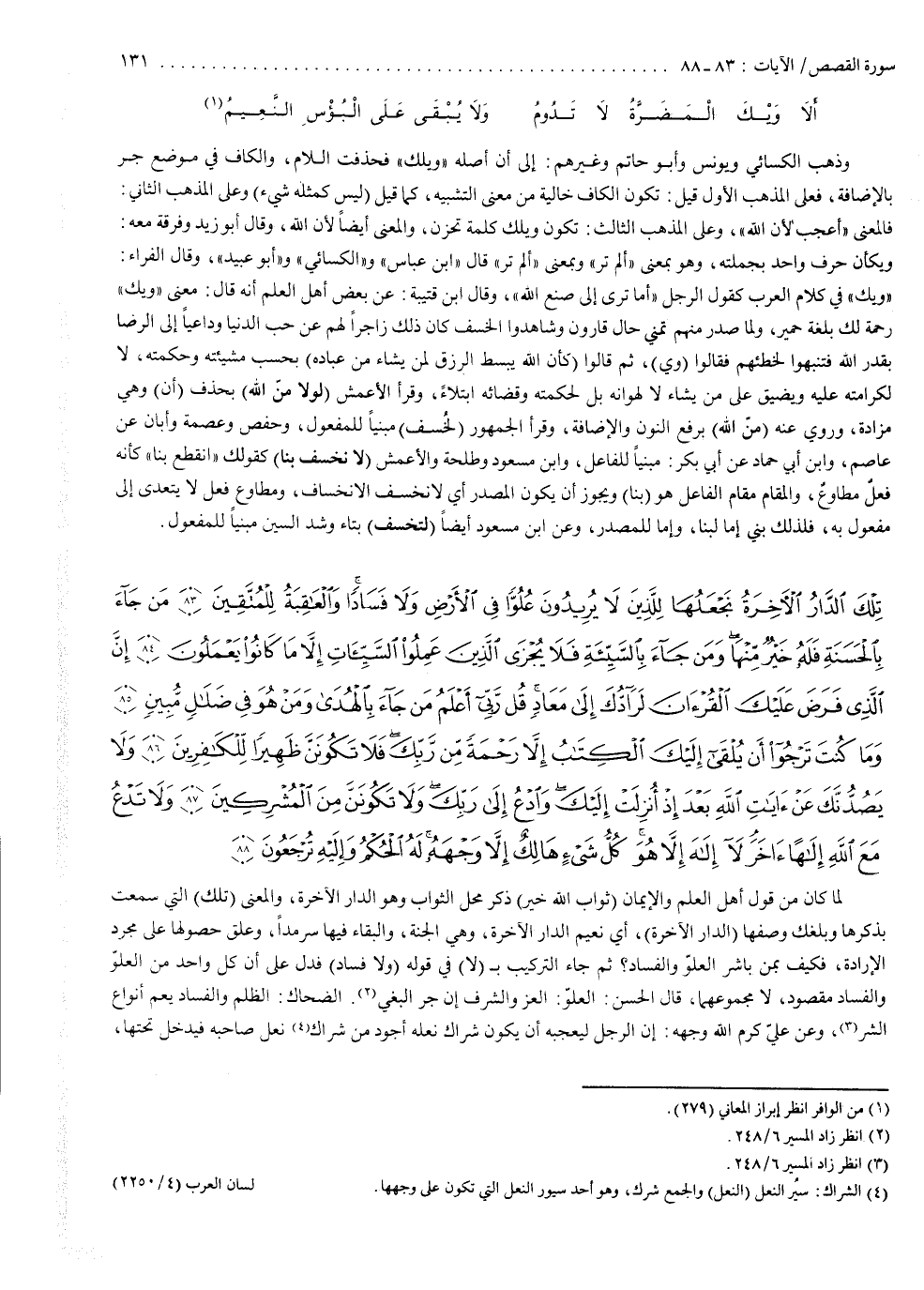 ( تِلْكَ الدَّارُ الاْخِرَةُ نَجْعَلُهَا لِلَّذِينَ لاَ يُرِيدُونَ عُلُوّاً فِى الاْرْضِ وَلاَ فَسَاداً وَالْعَاقِبَةُ لِلْمُتَّقِينَ مَن جَاء بِالْحَسَنَةِ فَلَهُ خَيْرٌ مّنْهَا وَمَن جَاء بِالسَّيّئَةِ فَلاَ يُجْزَى الَّذِينَ عَمِلُواْ السَّيّئَاتِ إِلاَّ مَا كَانُواْ يَعْمَلُونَ إِنَّ ).