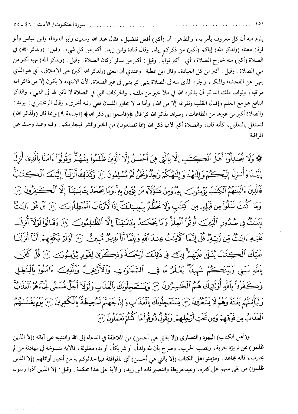 ( وَلاَ تُجَادِلُواْ أَهْلَ الْكِتَابِ إِلاَّ بِالَّتِى هِىَ أَحْسَنُ إِلاَّ الَّذِينَ ظَلَمُواْ مِنْهُمْ وَقُولُواْ ءامَنَّا بِالَّذِى أُنزِلَ إِلَيْنَا وَأُنزِلَ إِلَيْكُمْ ).