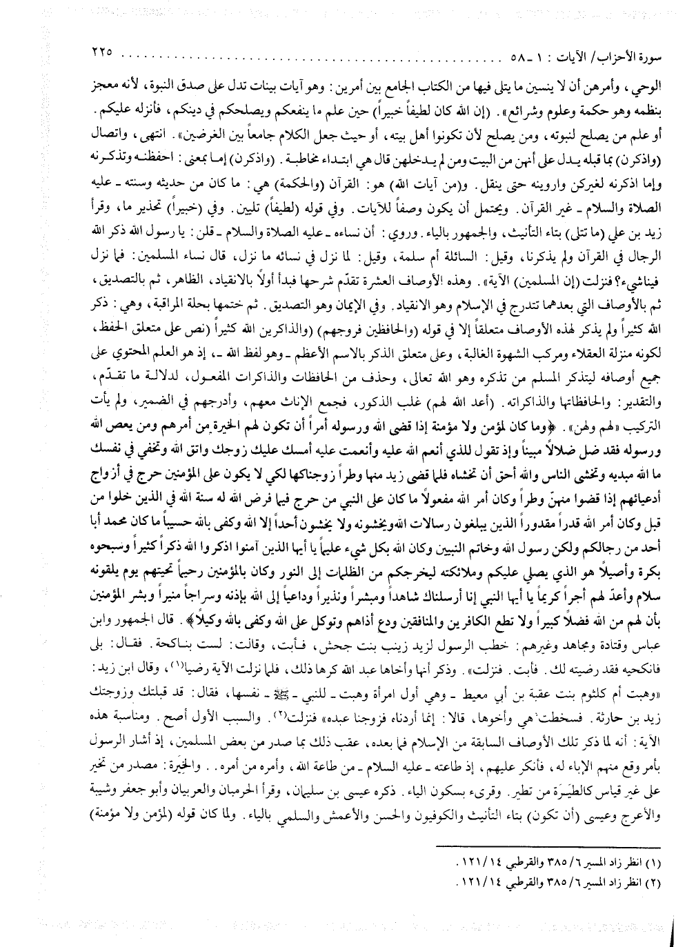 ( وَمَا كَانَ لِمُؤْمِنٍ وَلاَ مُؤْمِنَةٍ إِذَا قَضَى اللَّهُ وَرَسُولُهُ أَمْراً أَن يَكُونَ لَهُمُ الْخِيَرَةُ مِنْ أَمْرِهِمْ وَمَن يَعْصِ اللَّهَ ).