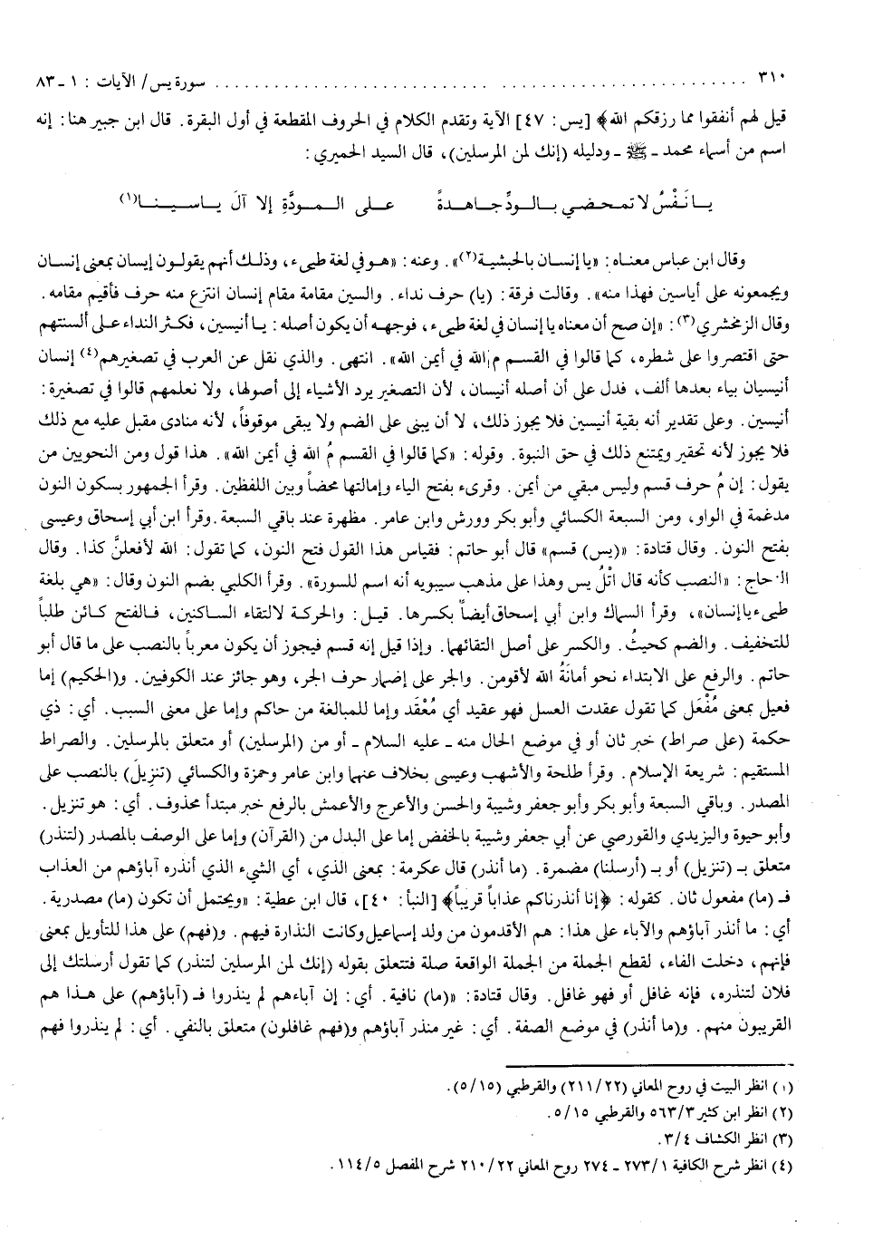 قيل لهم أنفقوا مما رزقكم الله ( [ يس : 47 ] الآية وتقدم الكلام في الحروف المقطعة في أول البقرة . قال ابن جبير هنا : إنه اسم من أسماء محمد - ( صلى الله عليه وسلم ) - ودليله ( إنك من المرسلين ) ، قال السيد الحميري : يا نفس لا تمخضي بالود جاهدة