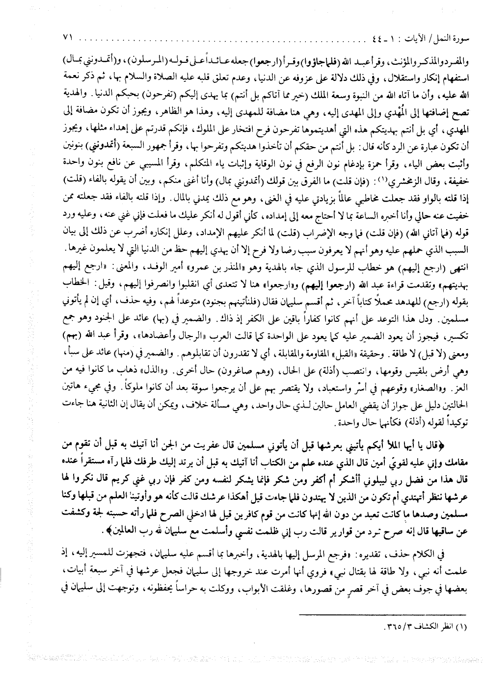 ( قَالَ يَاءادَمُ أَيُّهَا الْمَلاَ أَيُّكُمْ يَأْتِينِى بِعَرْشِهَا قَبْلَ أَن يَأْتُونِى مُسْلِمِينَ قَالَ عِفْرِيتٌ مّن الْجِنّ أَنَاْ ءاتِيكَ بِهِ قَبْلَ أَن تَقُومَ مِن مَّقَامِكَ وَإِنّى عَلَيْهِ لَقَوِىٌّ أَمِينٌ قَالَ الَّذِى عِندَهُ عِلْمٌ مّنَ الْكِتَابِ أَنَاْ ءاتِيكَ بِهِ قَبْلَ أَن يَرْتَدَّ إِلَيْكَ طَرْفُكَ فَلَمَّا رَءاهُ مُسْتَقِرّاً عِندَهُ قَالَ ).