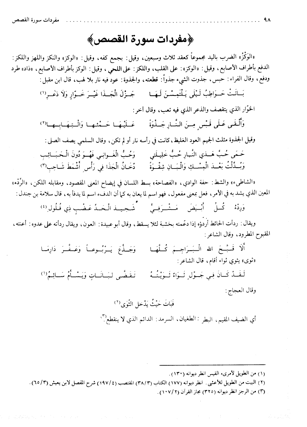 الشاطىء والشط : حفة الوادي . الفصاحة : بسط اللسان في إيضاح المعنى المقصود ، ومقابله : اللكن . الردء : المعين الذي يشد به في الأمر ، فعل بمعنى مفعول ، فهو اسم لما يعان به ، كما أن الدفء اسم لما يدفأ به . قال سلامة بن حندل :