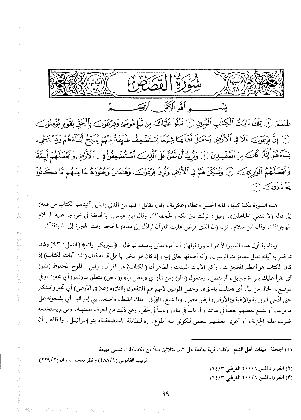 2 ( ) طسم تِلْكَ ءَايَاتُ الْكِتَابِ الْمُبِينِ نَتْلُواْ عَلَيْكَ مِن نَّبَإِ مُوسَى وَفِرْعَوْنَ بِالْحَقِّ لِقَوْمٍ يُؤْمِنُونَ إِنَّ فِرْعَوْنَ عَلاَ فِى الاٌّ رْضِ وَجَعَلَ أَهْلَهَا شِيَعاً يَسْتَضْعِفُ طَآئِفَةً مِّنْهُمْ يُذَبِّحُ أَبْنَآءَهُمْ وَيَسْتَحْىِ نِسَاءَهُمْ إِنَّهُ كَانَ مِنَ الْمُفْسِدِينَ وَنُرِيدُ أَن نَّمُنَّ عَلَى الَّذِينَ اسْتُضْعِفُواْ فِى الاٌّ رْضِ وَنَجْعَلَهُمْ أَئِمَّةً وَنَجْعَلَهُمُ الْوَارِثِينَ وَنُمَكِّنَ لَهُمْ فِى الاٌّ رْضِ وَنُرِىَ فِرْعَوْنَ وَهَامَانَ وَجُنُودَهُمَا مِنْهُمْ مَّا كَانُواْ يَحْذَرون