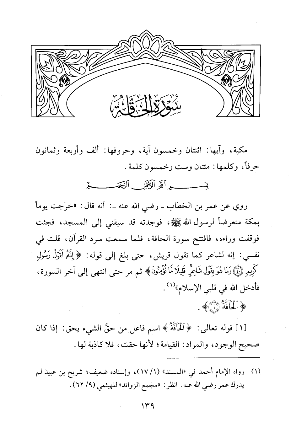 [1] قوله تعالى: {الْحَاقَّةُ} اسم فاعل من حقَّ الشيء يحق: إذا كان صحيح الوجود، والمراد: القيامة؛ لأنها حقت، فلا كاذبة لها.