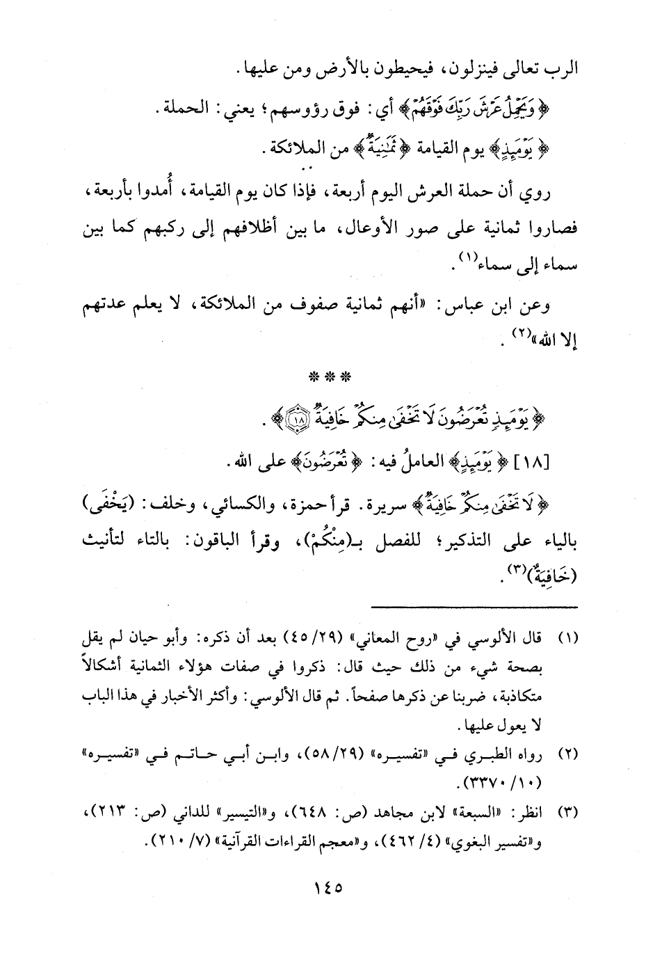 (¬1) قال الألوسي في "روح المعاني" (29/ 45) بعد أن ذكره: وأبو حيان لم يقل بصحة شيء من ذلك حيث قال: ذكروا في صفات هؤلاء الثمانية أشكالًا متكاذبة، ضربنا عن ذكرها صفحًا. ثم قال الألوسي: وأكثر الأخبار في هذا الباب لا يعول عليها.