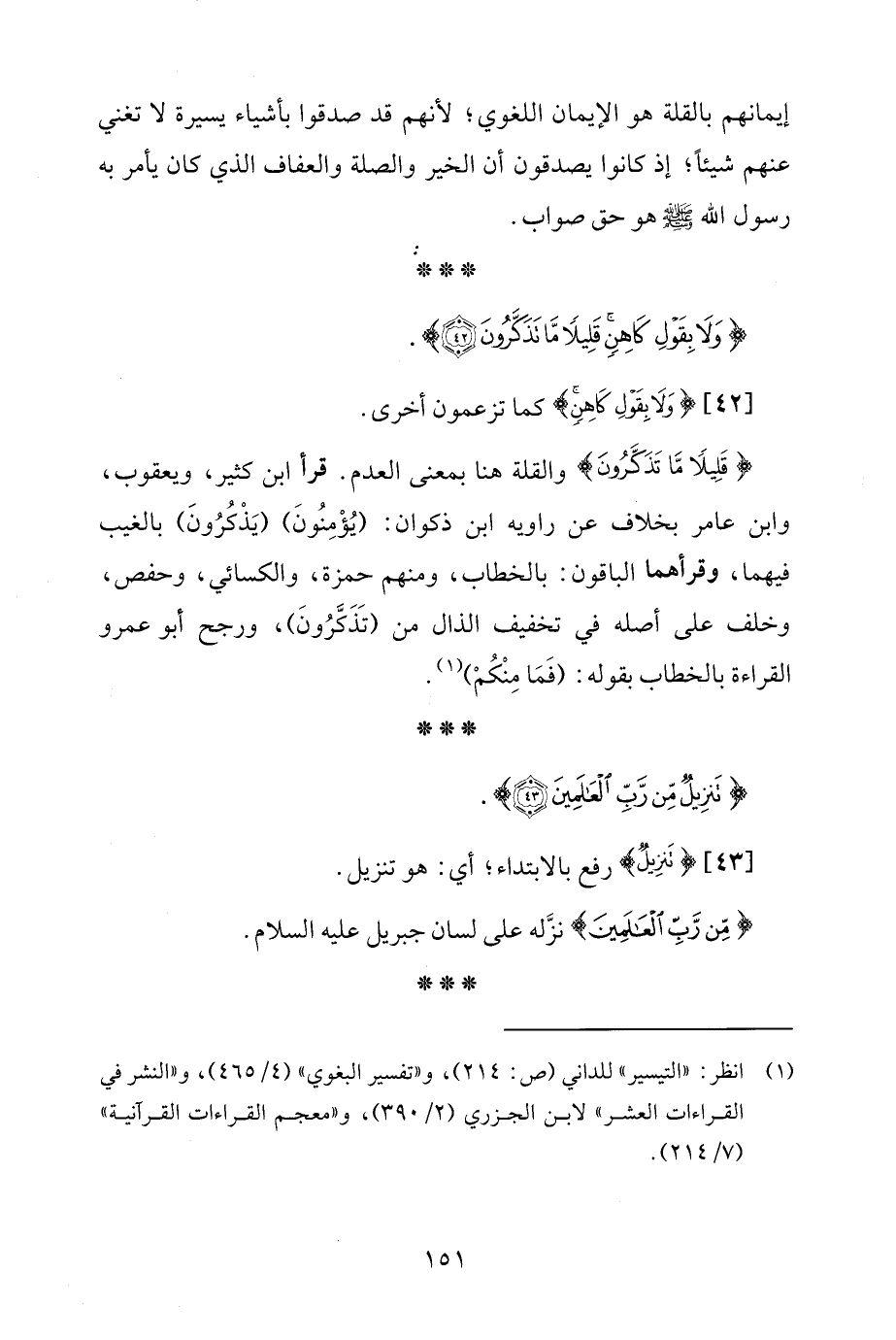 [42] {وَلَا بِقَوْلِ كَاهِنٍ} كما تزعمون أخرى.
