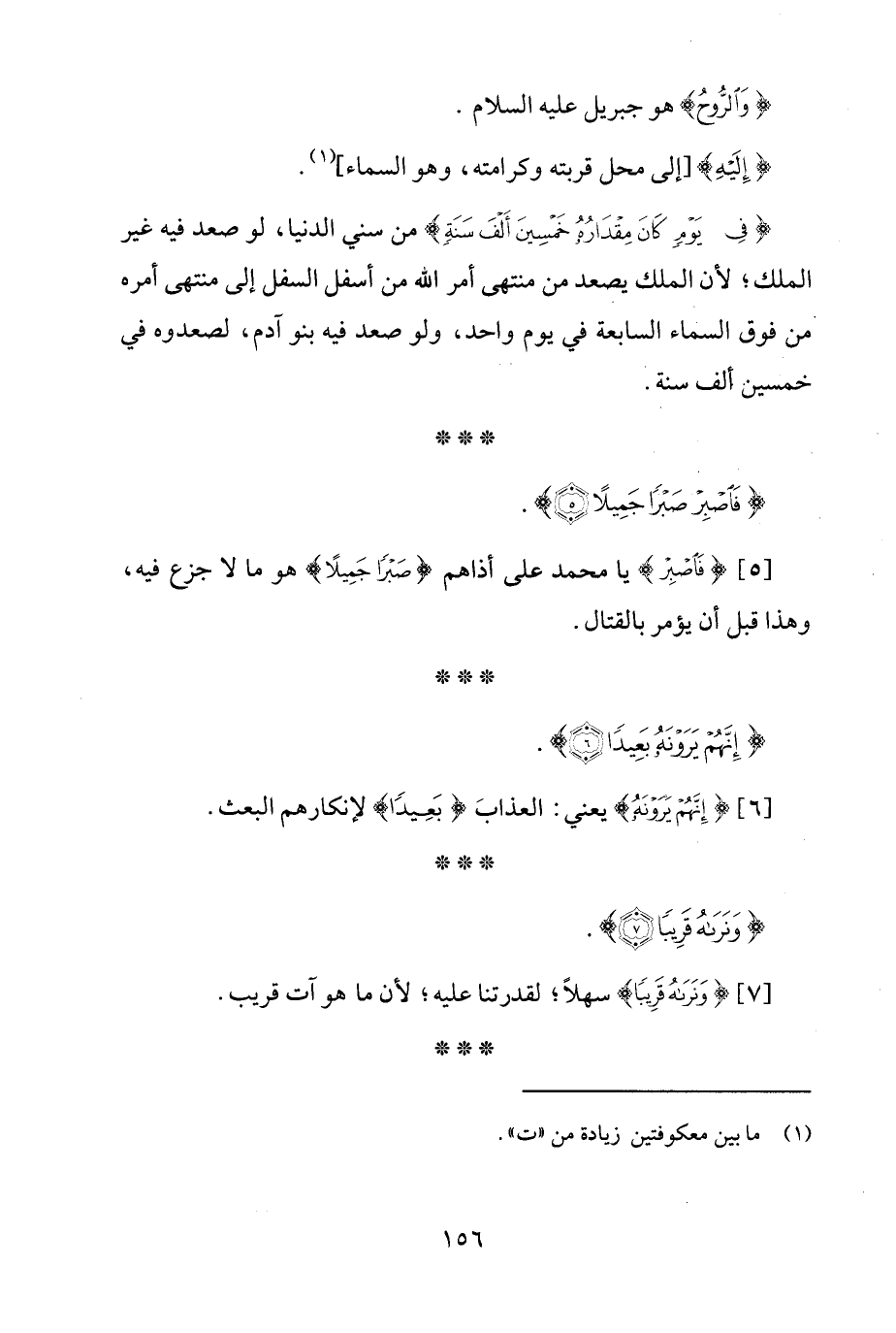 [5] {فَاصْبِرْ} يا محمد على أذاهم {صَبْرًا جَمِيلًا} هو ما لا جزع فيه، وهذا قبل أن يؤمر بالقتال.