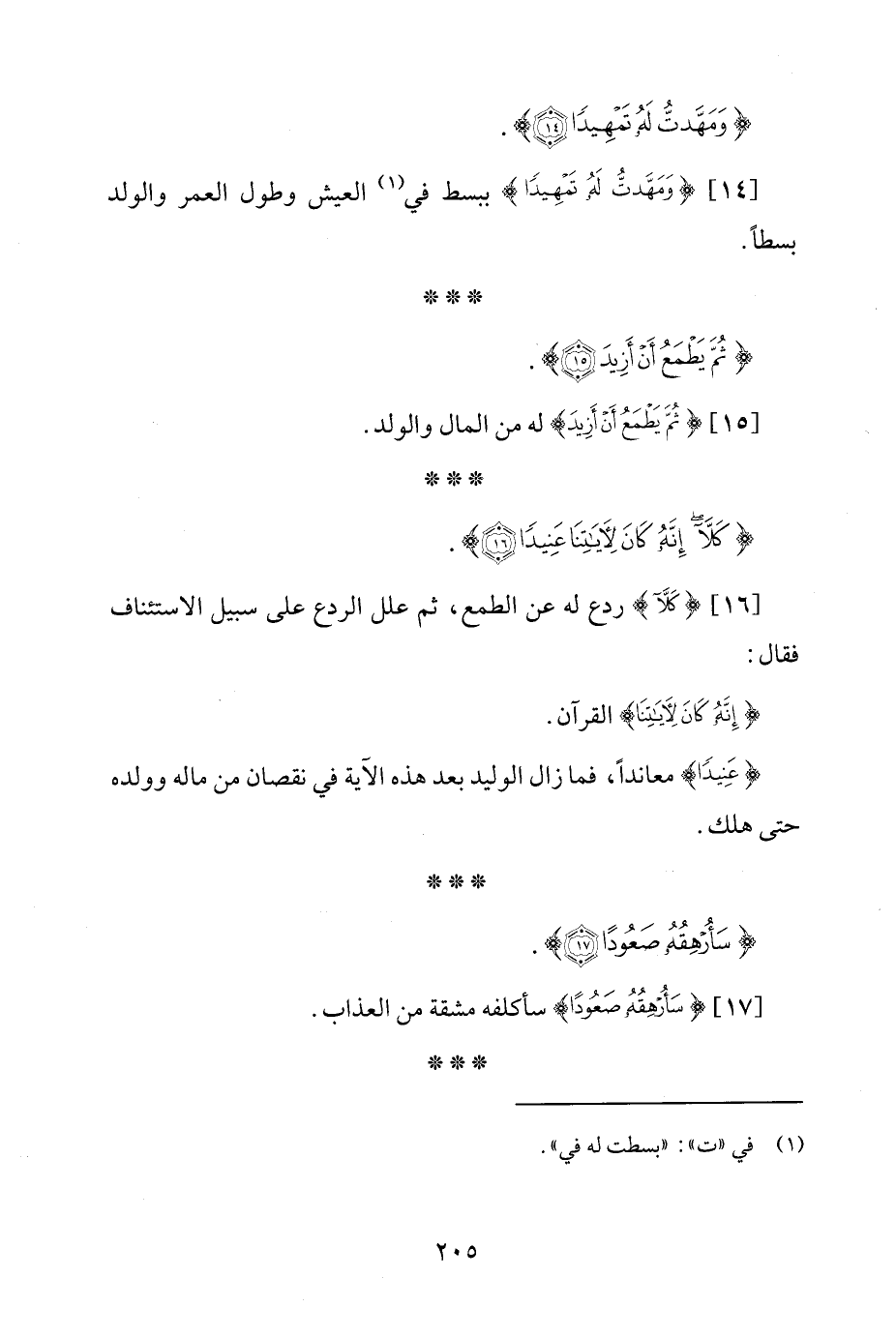 [14] {وَمَهَّدْتُ لَهُ تَمْهِيدًا} ببسط في (¬1) العيش وطول العمر والولد بسطًا.