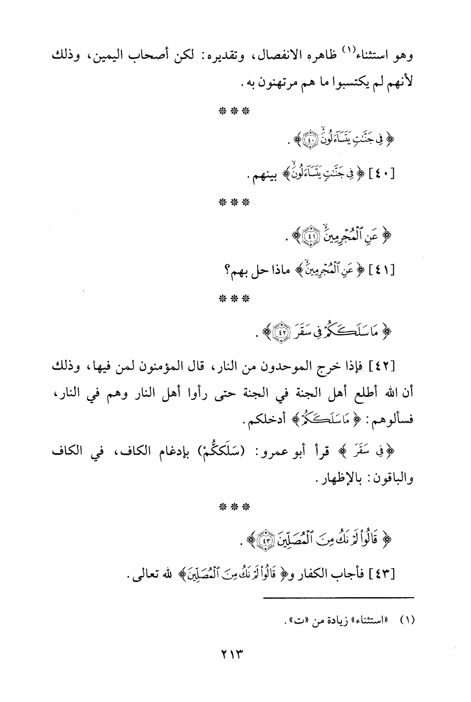 [43] فأجاب الكفار و {قَالُوا لَمْ نَكُ مِنَ الْمُصَلِّينَ} لله تعالى.