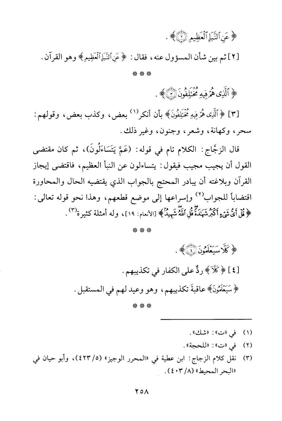 [3] {الَّذِي هُمْ فِيهِ مُخْتَلِفُونَ} بأن أنكر (¬1) بعض، وكذب بعض، وقولهم: سحر، وكهانة، وشعر، وجنون، وغير ذلك.