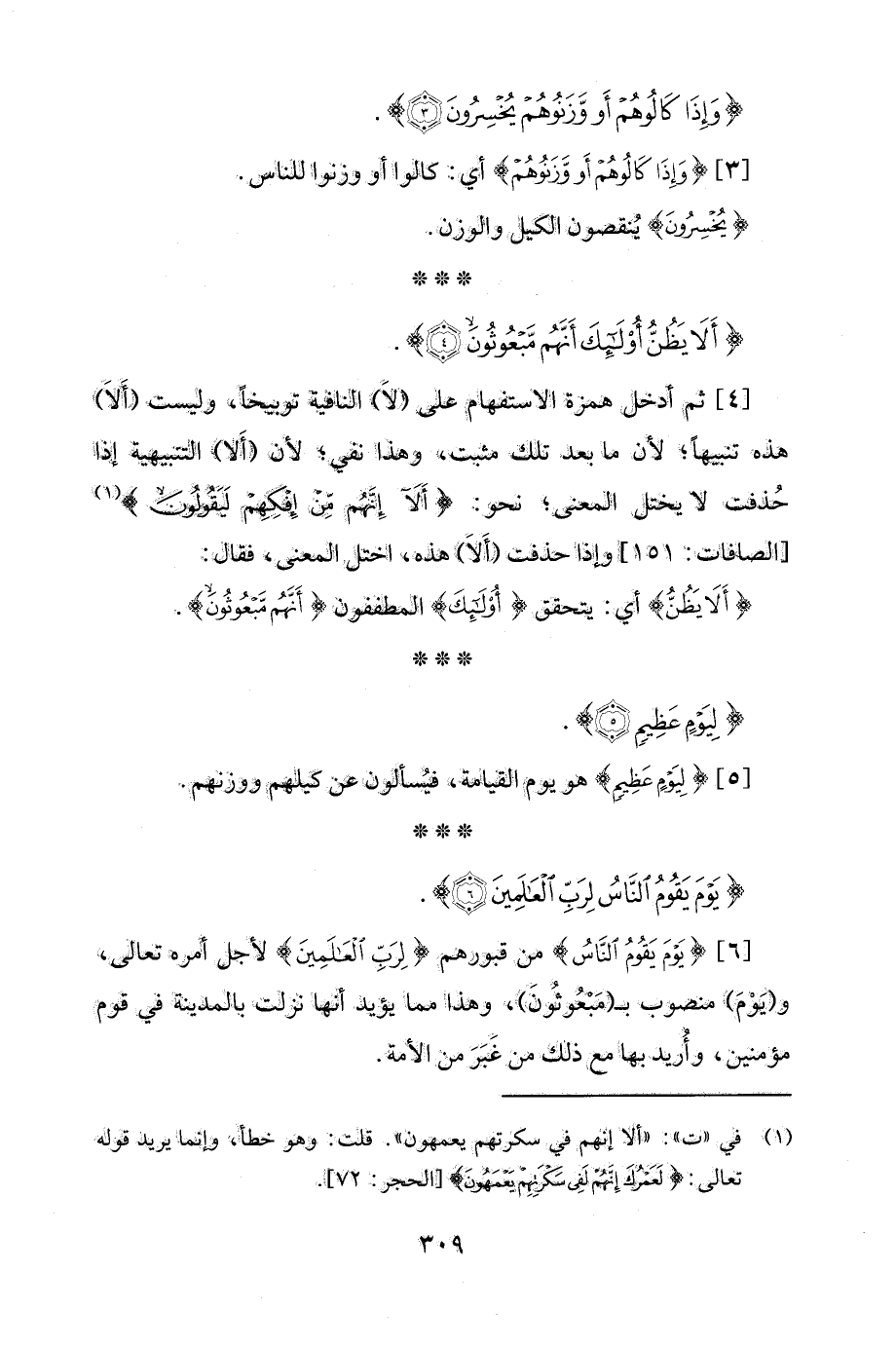[5] {لِيَوْمٍ عَظِيمٍ} هو يوم القيامة، فيُسألون عن كيلهم ووزنهم.