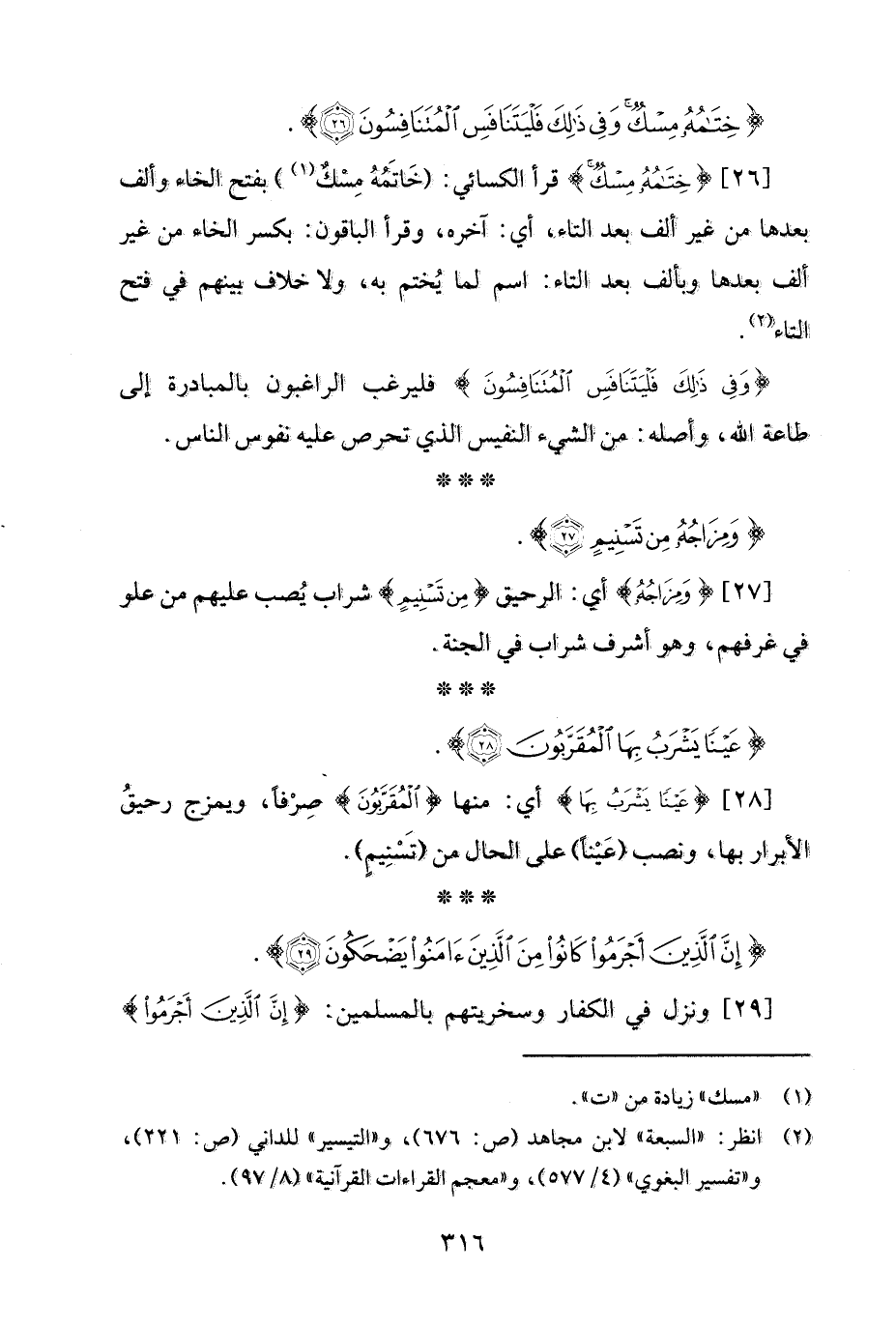 {وَفِي ذَلِكَ فَلْيَتَنَافَسِ الْمُتَنَافِسُونَ} فليرغب الراغبون بالمبادرة إلى طاعة الله، وأصله: من الشيء النفيس الذي تحرص عليه نفوس الناس.