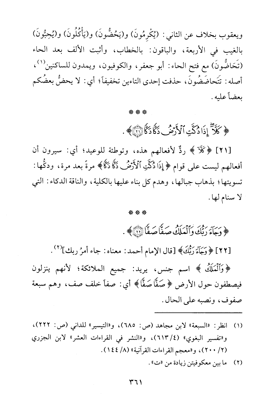 [22] {وَجَاءَ رَبُّكَ} [قال الإمام أحمد: معناه: جاء أمرُ ربك] (¬2).