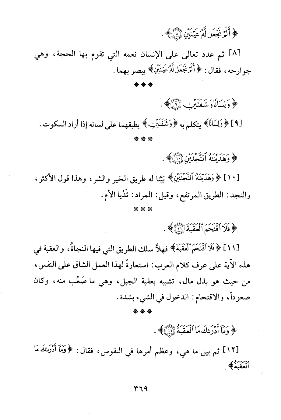[9] {وَلِسَانًا} يتكلم به {وَشَفَتَيْنِ} يطبقهما على لسانه إذا أراد السكوت.