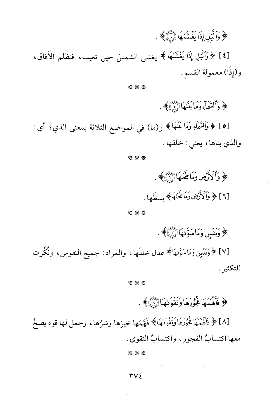 [5] {وَالسَّمَاءِ وَمَا بَنَاهَا} و (ما) في المواضع الثلاثة بمعنى الذي؛ أي: والذي بناها؛ يعني: خلقها.