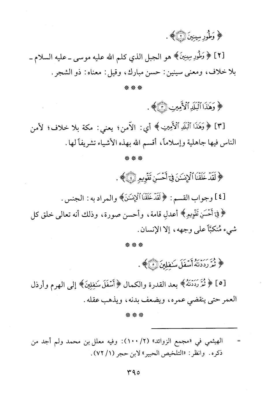 [2] {وَطُورِ سِينِينَ} هو الجبل الذي كلم الله عليه موسى -عليه السلام- بلا خلاف، ومعنى سينين: حسن مبارك، وقيل: معناه: ذو الشجر.