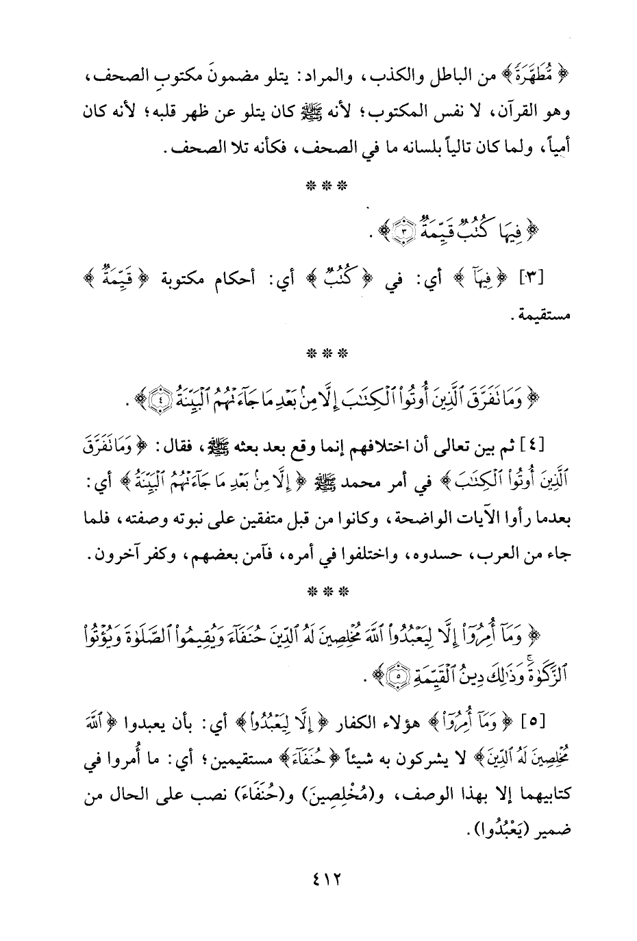{وَمَا أُمِرُوا إِلَّا لِيَعْبُدُوا اللَّهَ مُخْلِصِينَ لَهُ الدِّينَ حُنَفَاءَ وَيُقِيمُوا الصَّلَاةَ وَيُؤْتُوا الزَّكَاةَ وَذَلِكَ دِينُ الْقَيِّمَةِ (5)}.