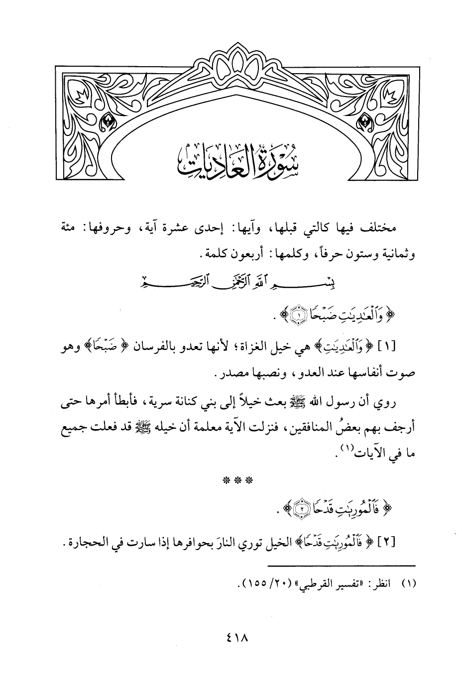 {وَالْعَادِيَاتِ ضَبْحًا (1)}.