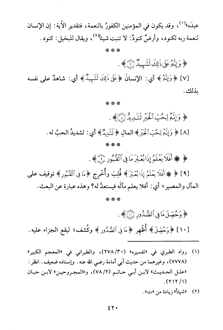 عبدَه" (¬1)، وقد يكون في المؤمنين الكفورُ بالنعمة، فتقدير الآية: إنَّ الإنسان لنعمة ربه لكنود، وأرضٌ كنودٌ: لا تنبت شيئًا (¬2)، ويقال للبخيل: كنود.