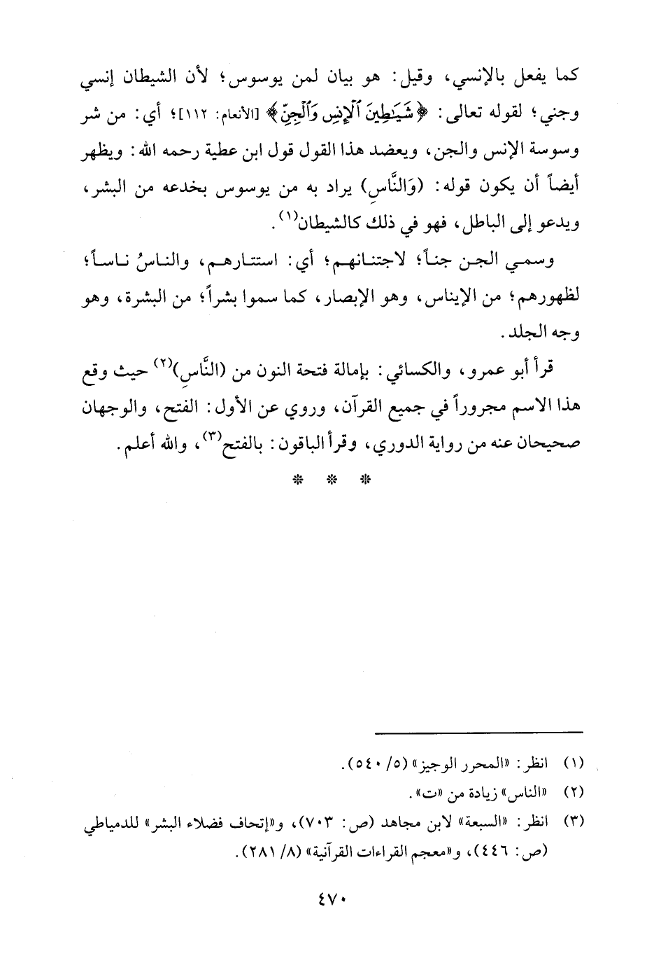قرأ أبو عمرو، والكسائي: بإمالة فتحة النون من (النَّاسِ) (¬2) حيث وقع هذا الاسم مجرورًا في جميع القرآن، وروي عن الأوّل: الفتح، والوجهان صحيحان عنه من رواية الدوري، وقرأ الباقون: بالفتح (¬3)، والله أعلم.