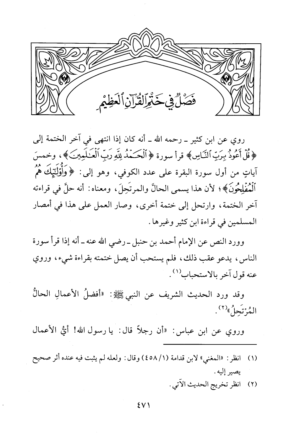 فَصْلٌ فِي خَتْمِ القُرآنِ العَظِيْمِ