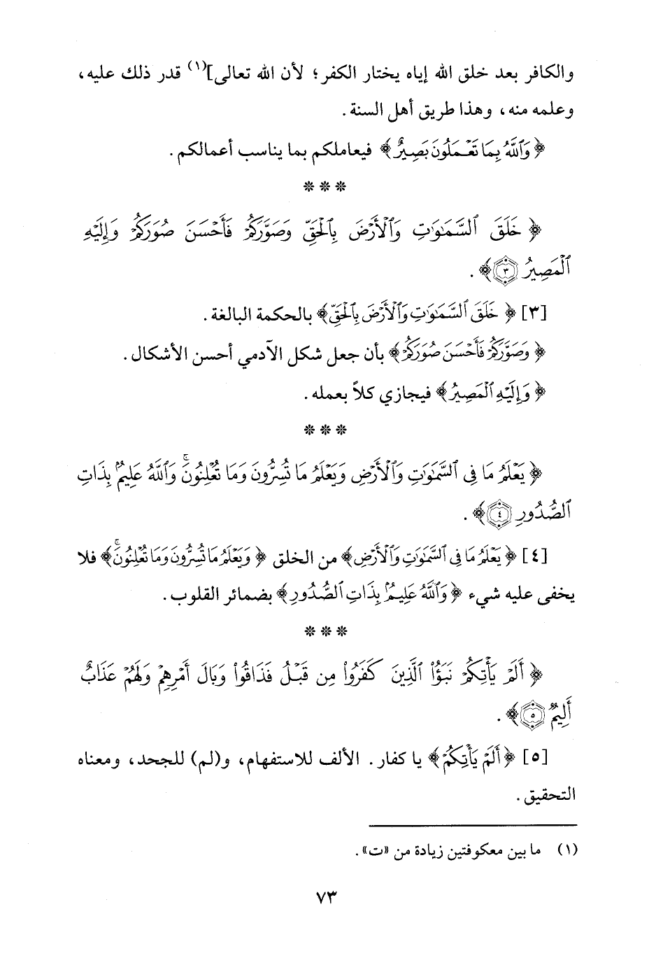{خَلَقَ السَّمَاوَاتِ وَالْأَرْضَ بِالْحَقِّ وَصَوَّرَكُمْ فَأَحْسَنَ صُوَرَكُمْ وَإِلَيْهِ الْمَصِيرُ (3)}.