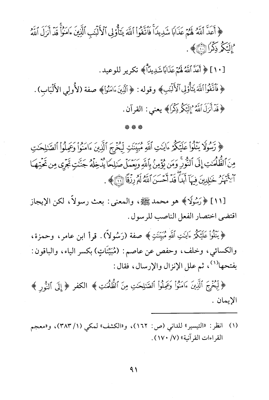 {رَسُولًا يَتْلُو عَلَيْكُمْ آيَاتِ اللَّهِ مُبَيِّنَاتٍ لِيُخْرِجَ الَّذِينَ آمَنُوا وَعَمِلُوا الصَّالِحَاتِ مِنَ الظُّلُمَاتِ إِلَى النُّورِ وَمَنْ يُؤْمِنْ بِاللَّهِ وَيَعْمَلْ صَالِحًا يُدْخِلْهُ جَنَّاتٍ تَجْرِي مِنْ تَحْتِهَا الْأَنْهَارُ خَالِدِينَ فِيهَا أَبَدًا قَدْ أَحْسَنَ اللَّهُ لَهُ رِزْقًا (11)}.