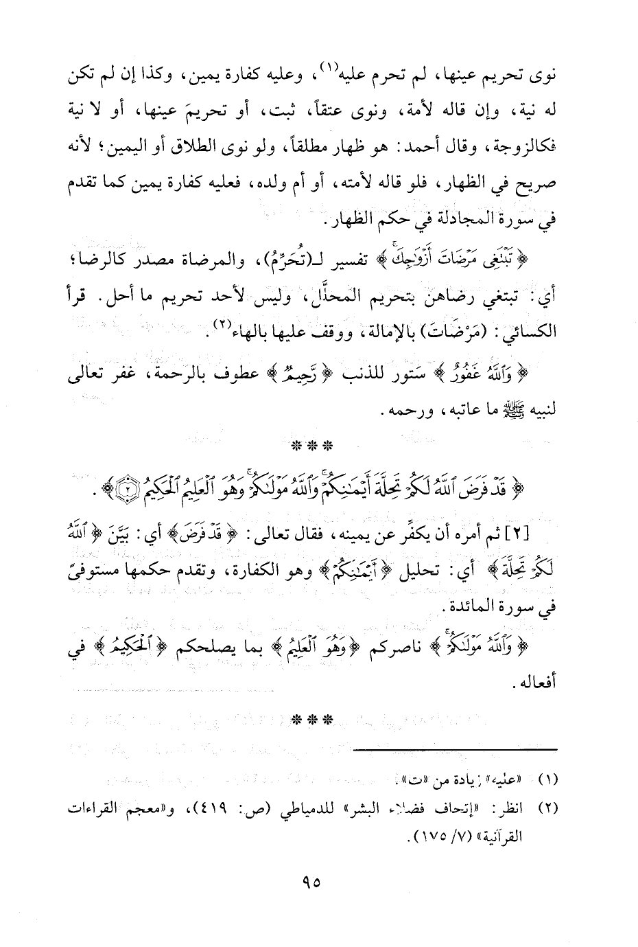 {قَدْ فَرَضَ اللَّهُ لَكُمْ تَحِلَّةَ أَيْمَانِكُمْ وَاللَّهُ مَوْلَاكُمْ وَهُوَ الْعَلِيمُ الْحَكِيمُ (2)}.