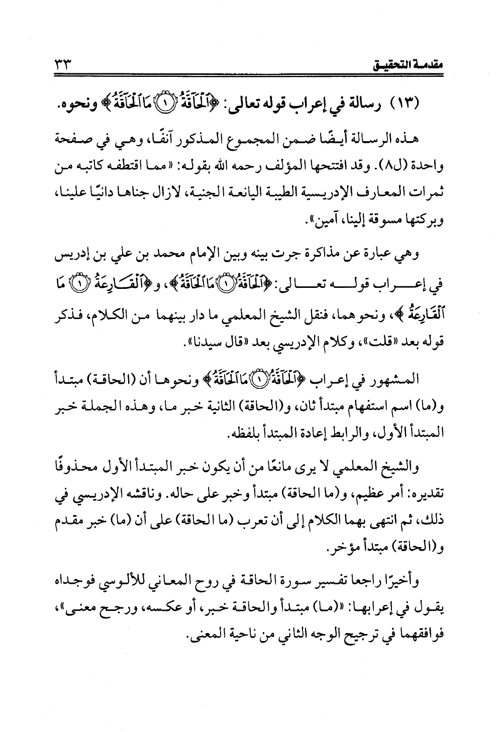 (١٣) رسالة في إعراب قوله تعالى: {الْحَاقَّةُ (١) مَا الْحَاقَّةُ} ونحوه.