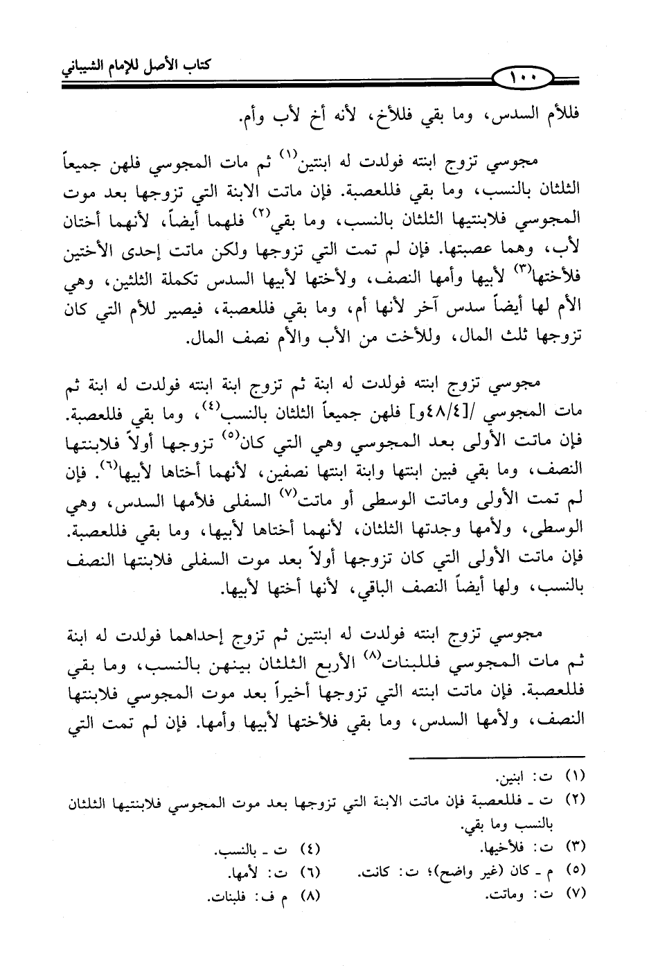 (¬2) ت - فللعصبة فكان ماتت الابنة التي تزوجها بعد موت المجوسي فلابنتيها الثلثان بالنسب وما بقى.