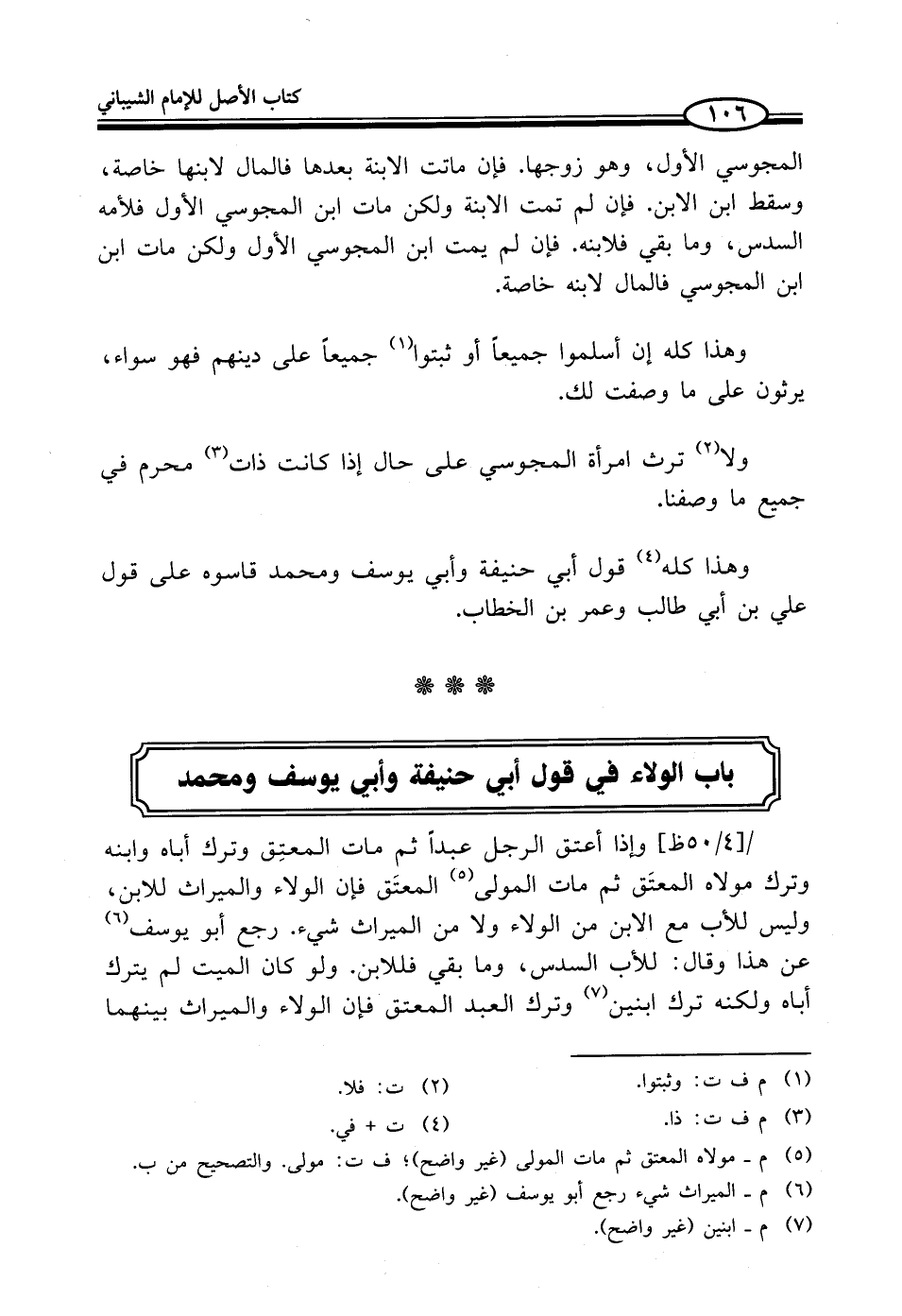 (¬6) م - الميراث شيء رجع أبو يوسف (غير واضح).