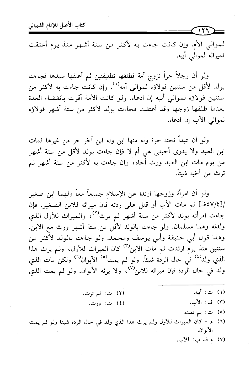 (¬6) م + كان الميراث للأول ولم يرث هذا الذي ولد في حال الردة شيئا ولو لم يمت الأبوان.