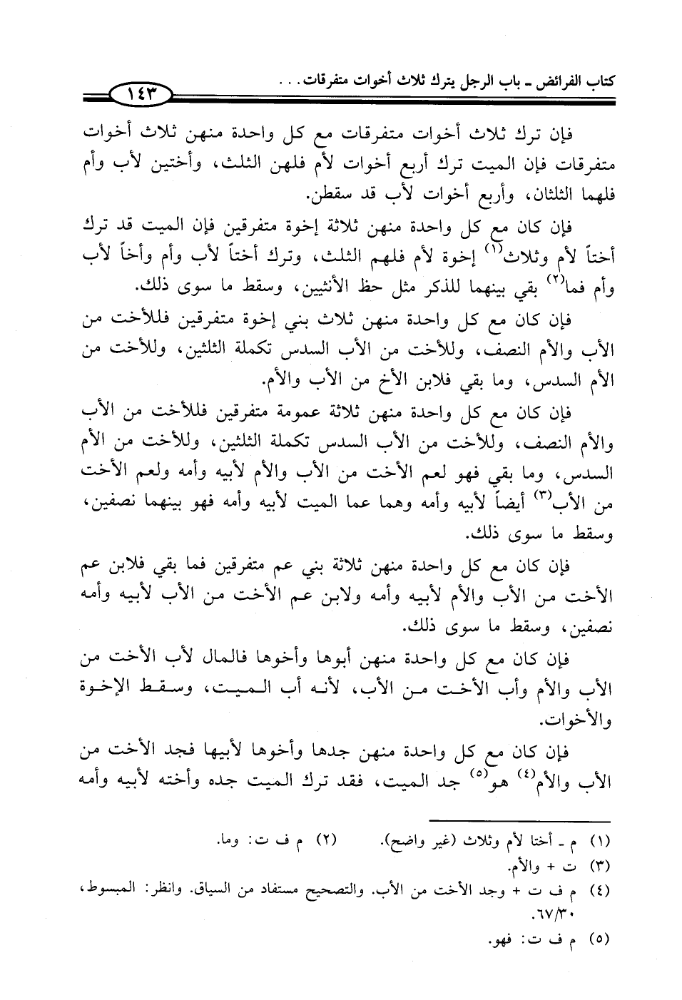 (¬4) م ف ت + وجد الأخت من الأب. والتصحيح مستفاد من السياق. وانظر: المبسوط، 30/ 67.