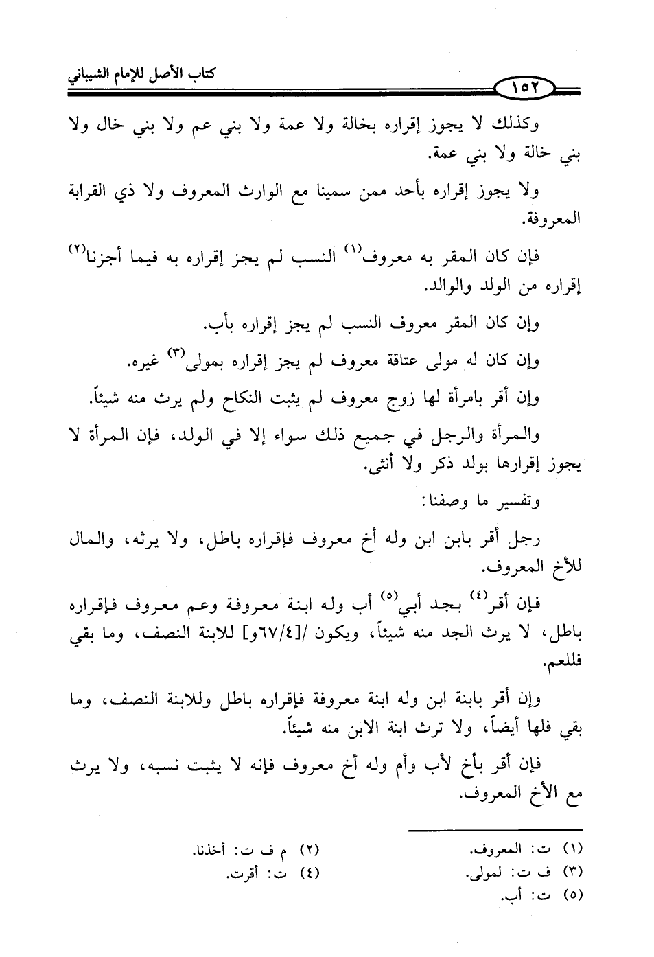 وكذلك لا يجوز إقراره بخالة ولا عمة ولا بني عم ولا بني خال ولا بني خالة ولا بني عمة.