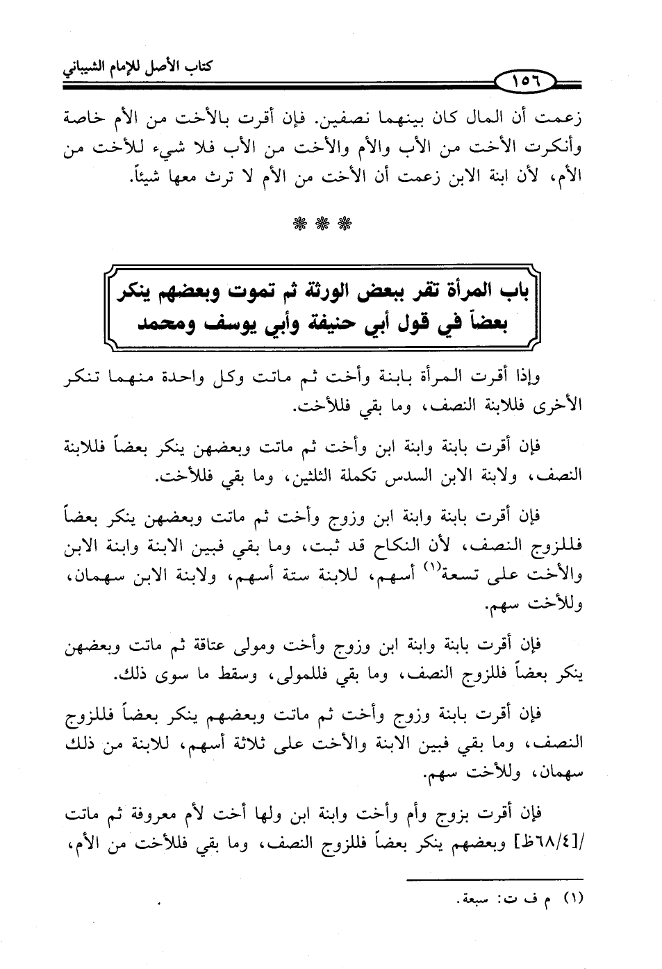 باب المرأة تقر ببعض الورثة ثم تموت وبعضهم ينكر بعضاً في قول أبي حنيفة وأبي يوسف ومحمد