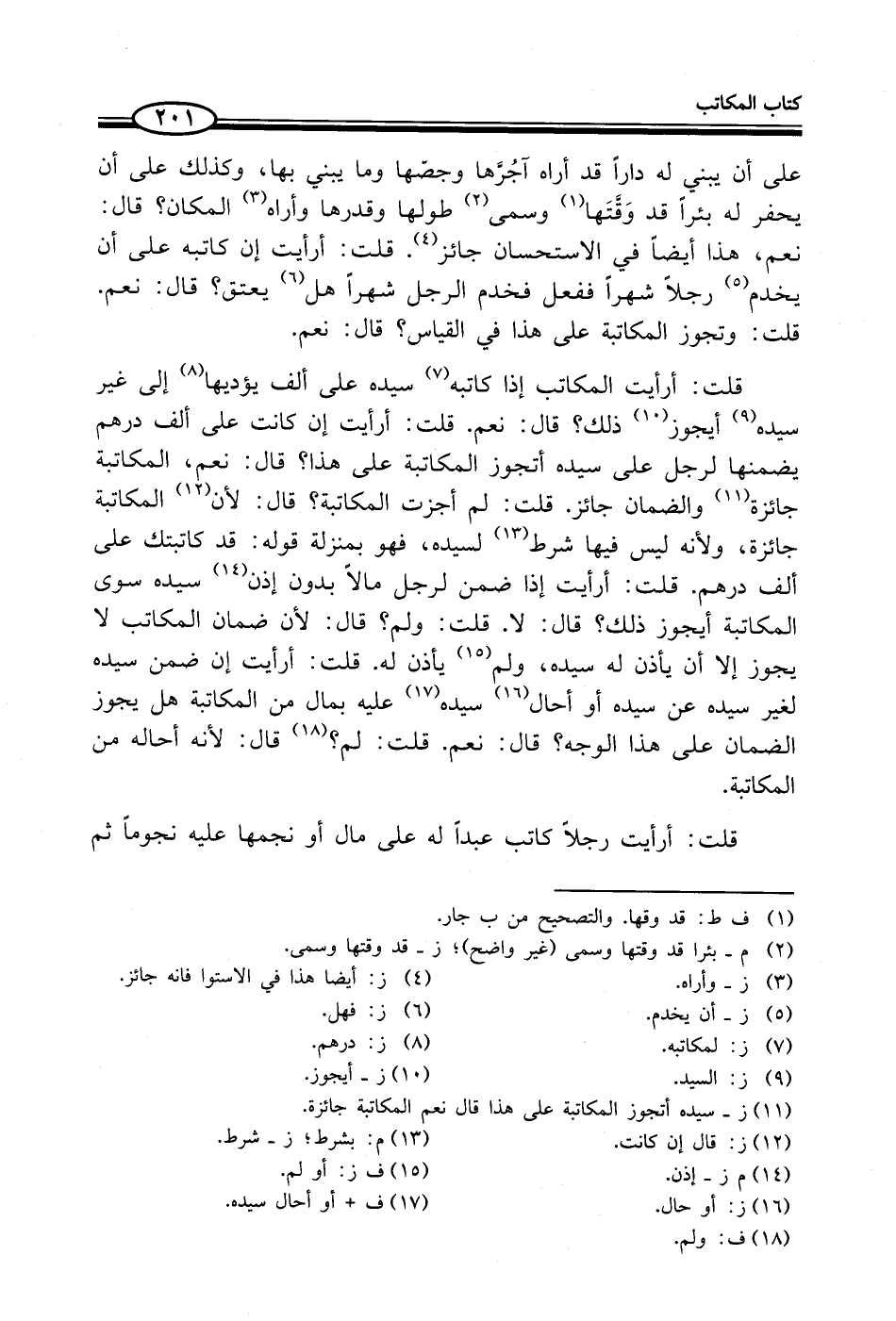 قلت: أرأيت رجلاً كاتب عبداً له على مال أو نجمها عليه نجوماً ثم