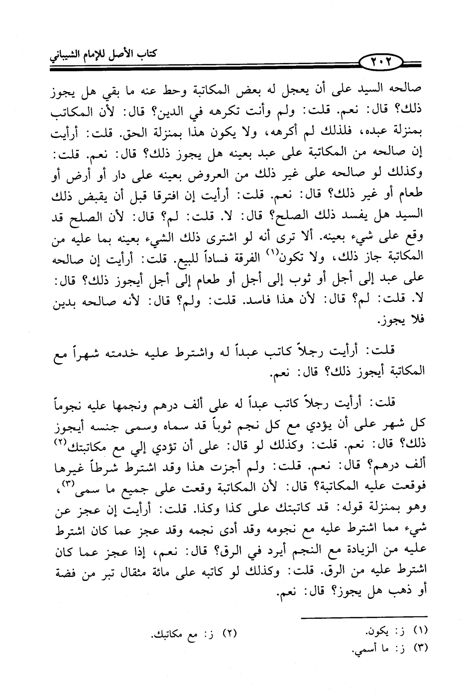 قلت: أرأيت رجلاً كاتب عبداً له واشترط عليه خدمته شهراً مع المكاتبة أيجوز ذلك؟ قال: نعم. قلت: أرأيت رجلاً كاتب عبداً له على ألف درهم ونجمها عليه نجوماً كل شهر على أن يؤدي مع كل نجم ثوباً قد سماه وسمى جنسه أيجوز ذلك؟ قال: نعم. قلت: وكذلك لو قال: على أن تؤدي إلي مع مكاتبتك (¬2) ألف درهم؟ قال: نعم. قلت: ولم أجزت هذا وقد اشترط شرطاً غيرها فوقعت عليه المكاتبة؟ قال: لأن المكاتبة وقعت على جميع ما سمى (¬3)، وهو بمنزلة قوله: قد كاتبتك على كذا وكذا. قلت: أرأيت إن عجز عن شيء مما اشترط عليه مع نجومه وقد أدى نجمه وقد عجز عما كان اشترط عليه من الزيادة مع النجم أيرد في الرق؟ قال: نعم، إذا عجز عما كان اشترط عليه من الرق. قلت: وكذلك لو كاتبه على مائة مثقال تبر من فضة أو ذهب هل يجوز؟ قال: نعم.