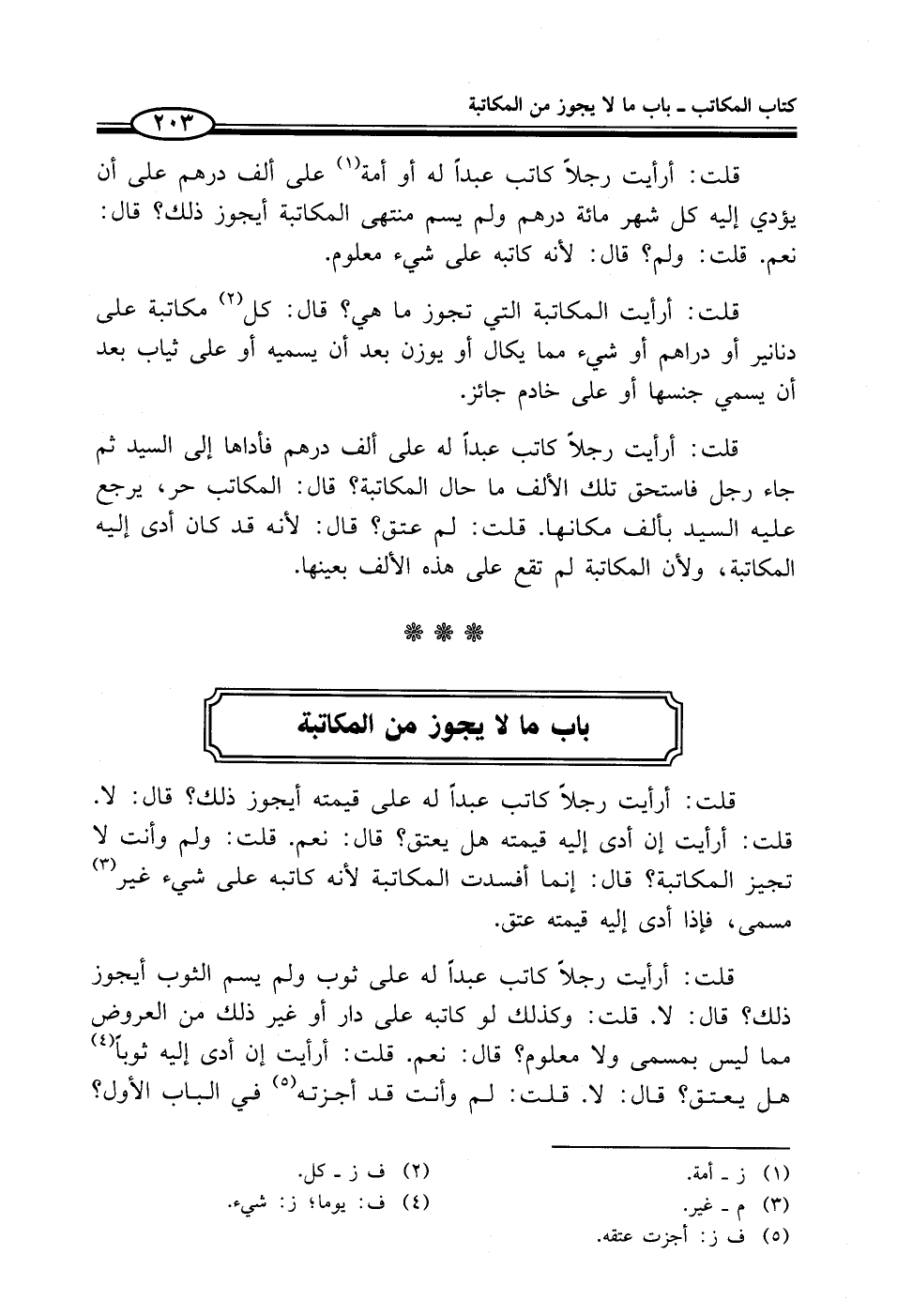 قلت: أرأيت المكاتبة التي تجوز ما هي؟ قال: كل (¬2) مكاتبة على دنانير أو دراهم أو شيء مما يكال أو يوزن بعد أن يسميه أو على ثياب بعد أن يسمي جنسها أو على خادم جائز.