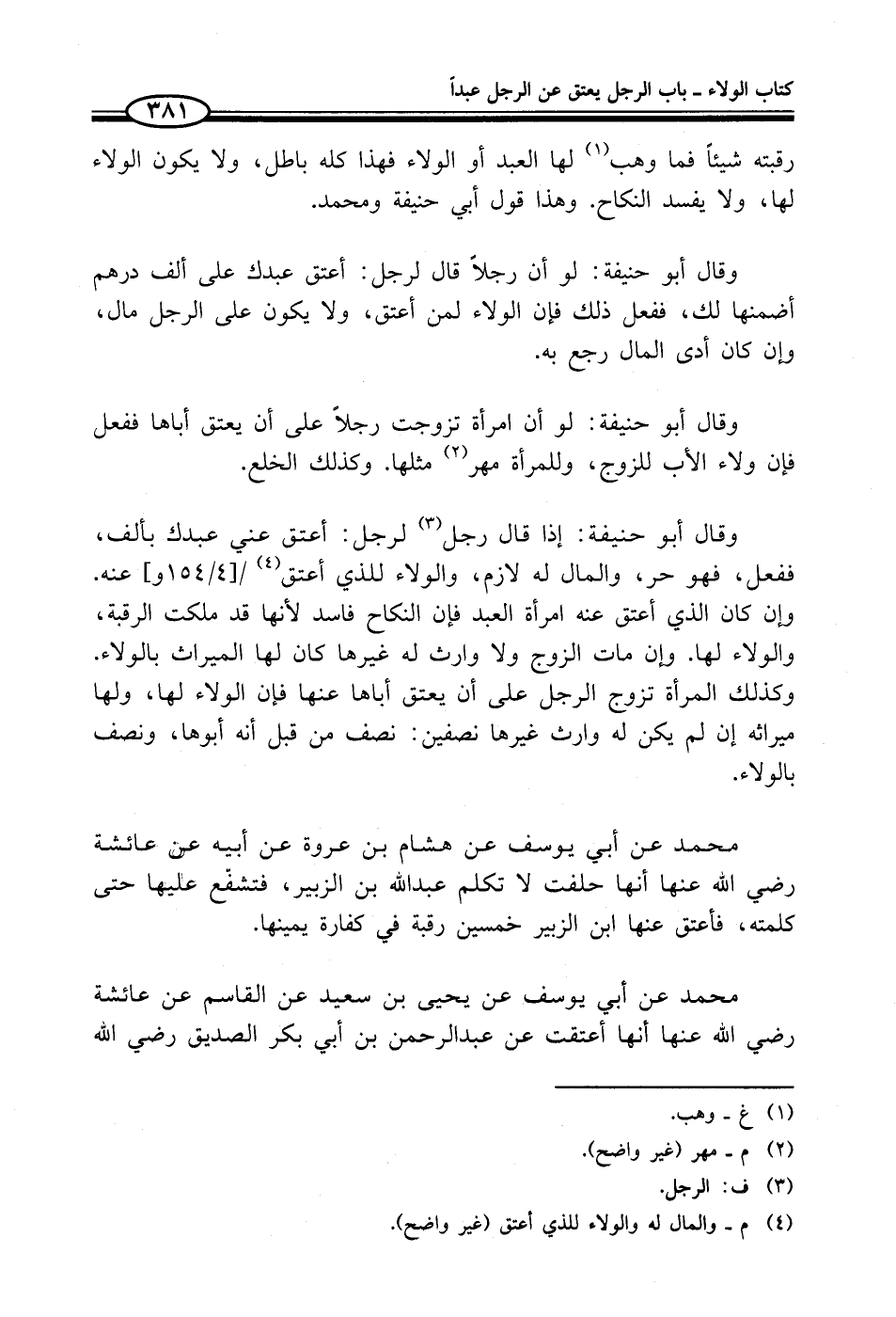 (¬4) م - والمال له والولاء للذي أعتق (غير واضح).