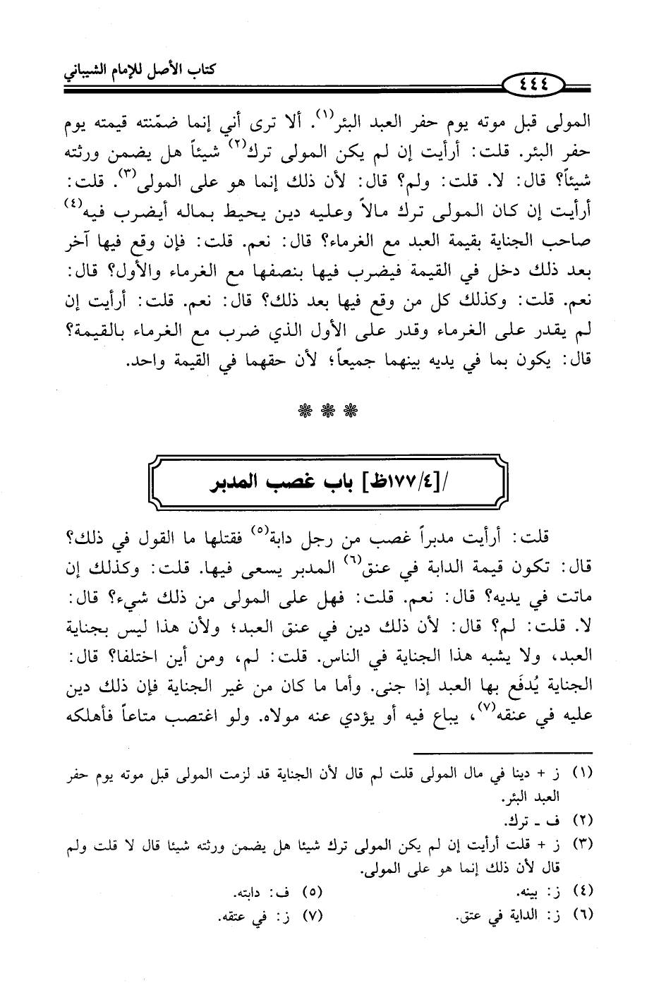 (¬3) ز + قلت أرأيت إن لم يكن المولى ترك شيئاً هل يضمن ورثته شيئاً قال لا قلت ولم قال لأن ذلك إنما هو على المولى.