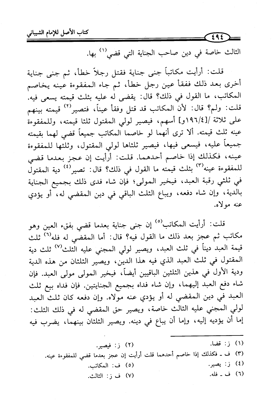 (¬3) ف - فكذلك إذا خاصم أحدهما قلت أرأيت إن عجز بعدما قضي للمفقوءة عينه.